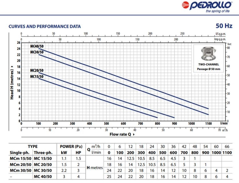 Pedrollo MC 30/50 – Αντλία Ακαθάρτων Νερού 2 1/2” 3HP (66m³/h, 24m)